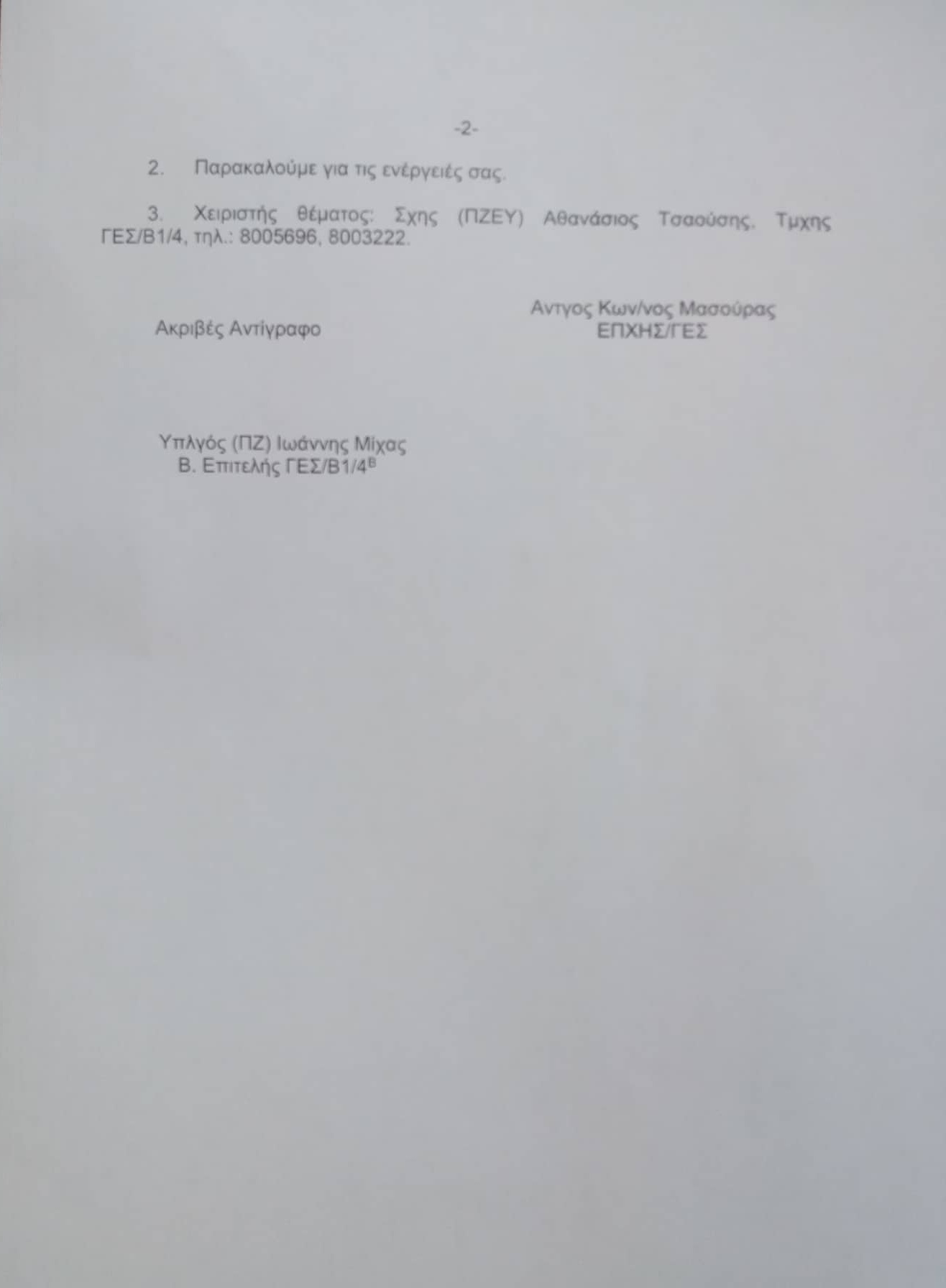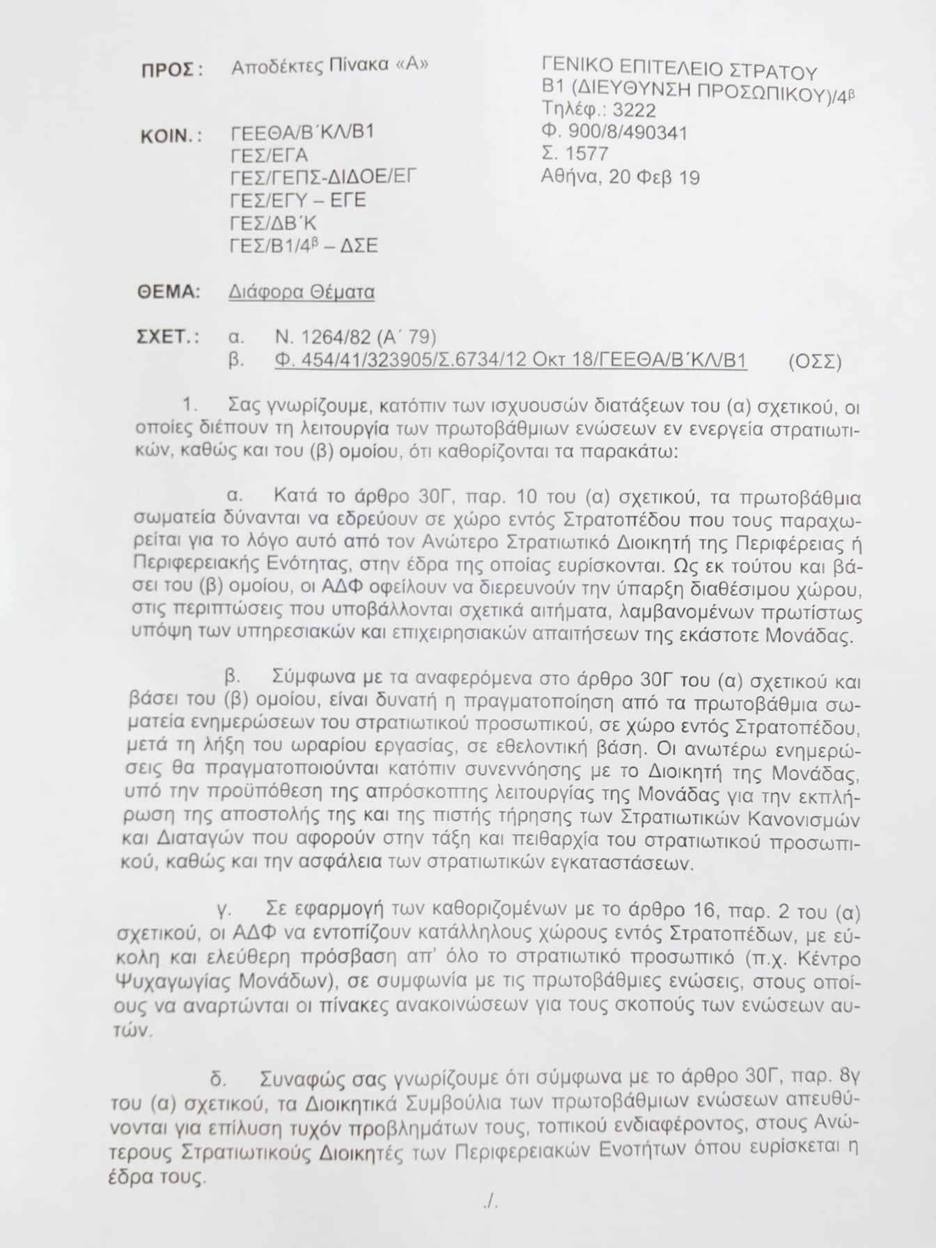 ΕΥΧΑΡΙΣΤΗΡΙΑ ΕΠΙΣΤΟΛΗ Αξιότιμε κ. Αρχηγέ, δεν πέρασαν παρά ελάχιστες ώρες από την ιστορική επίσημη συνάντηση αντιπροσωπείας της ...